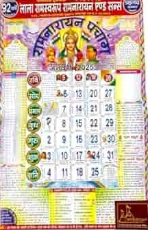 The Lala Ramswaroop Panchang includes information such as ‘Tithi’ (Hindu date), ‘Vara’ (days of the week), ‘Nakshatra’ (group of stars), ‘Yoga’ (auspicious moment), and ‘Karan’ (half of the Tithi).