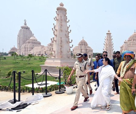 Local Trinamool Congress legislator Akhil Giri had claimed that the illuminated signage was a temporary structure that was raised for the purpose of the inauguration of the temple on April 30.
