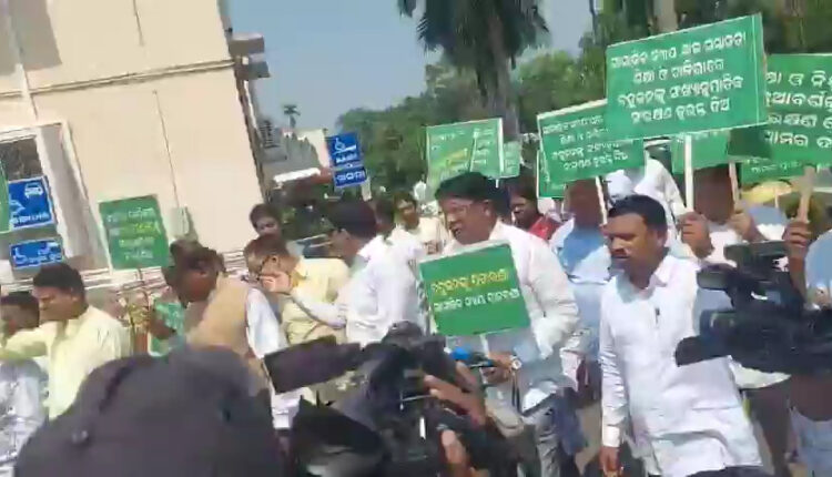 Holding placards, the BJD MLAs proceeded out of the House, breaking the barricades, and marched in a procession to the Ambedkar statue near AG Square, demanding 27 percent reservation for OBCs in education and jobs.