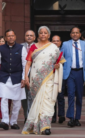 For the 2023 Budget, she chose a striking red and black saree with a temple border and intricate Kasuti threadwork, while last year, she opted for a blue tussar silk saree adorned with kantha embroidery, known for its rich texture and golden sheen.