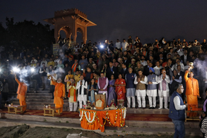 Chief Minister Rekha Gupta and her cabinet ministers, after taking charge of the office at the Delhi Secretariat this noon, assembled at the Vasudev Ghat of the river where they sought the blessings of Ma Yamuna before beginning the governance of the national capital.