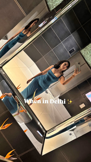 Sobhita took to her Instagram stories, where she shared a picture of herself. The actress can be seen taking a mirror selfie in a hotel dressed in a figure hugging blue dress.