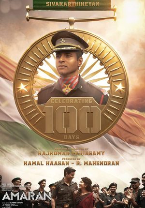 Chennai: Actor Kamal Haasan’s production house, Raaj Kamal Films International (RKFI) has now thanked the audience and the unit of its blockbuster film Amaran which on Friday completed a fantastic100-day run in theatres.