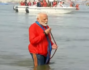 New Delhi: Prime Minister Narendra Modi took a holy dip at Sangam on Wednesday after he arrived in Prayagraj as part of his visit to the Maha Kumbh.