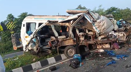 The accident took place at around 6:30 A.M., nearly 30 kilometres from the district headquarters. The driver lost control of the vehicle, which hit the central divider and veered into the opposite lane before crashing into an oncoming truck with tremendous force.
