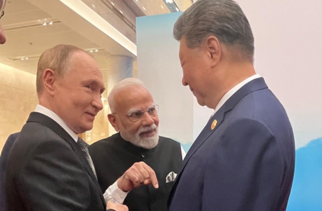 The images showed all three leaders smiling and conversing, reminiscent of a similar photo taken during the BRICS Summit in Kazan, Russia.