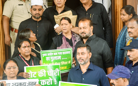 The opposition has been staging protests both inside and outside the Assembly and Council since the monsoon session began, demanding a discussion on the voter list revision and accusing the government of undermining the democratic rights of the poor in Bihar.
