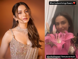 Mumbai: Rakul Preet Singh showcased her ecstatic face after her husband-producer Jackky Bhagnani brought her flowers. The actress expressed her happiness by saying that she “loves” him so much.