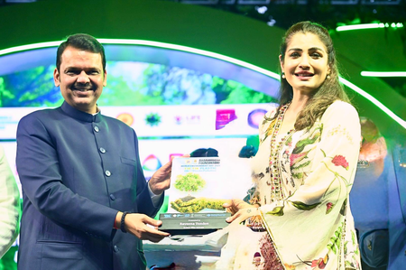 Mumbai: Bollywood actress Raveena Tandon was recently honoured by Maharashtra Deputy Chief Minister Devendra Fadnavis in recognition of her contributions and dedication to various social and environmental causes.