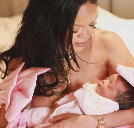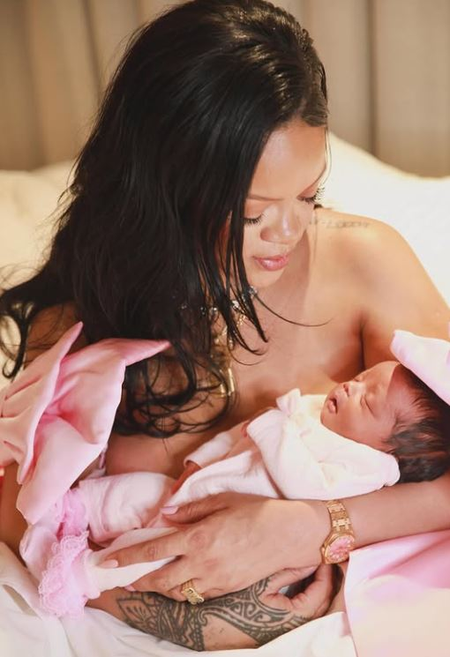 As per ‘People’, in the photo, Rihanna could be seen holding baby Rocki, who was wearing a pink onesie. She also included a photo of her baby’s little pink gloves, which had ribbons lacing them up the top.