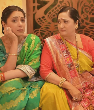 In the clip, Rupali was seen dressed in her black and gold saree. She walked over to Alpana, sat on her lap, and asked how she looked. In her usual witty style, Alpana humorously responded that Rupali looked like either a sofa cover or a purse. Rupali, not missing a beat, playfully retorted that she looked like a curtain. To which Alpana quipped, “Parde main reh.”
