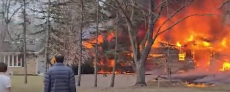 Smoke billowed from the burning home, which stood in the middle of a neighbourhood. The neighboring houses remained untouched by the fire. At least three firefighters were visible, working to extinguish the blaze.
