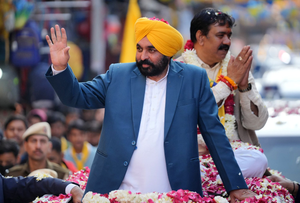 During the roadshow, Mann was greeted by AAP supporters, who cheered and chanted slogans as he made his way through the crowded streets of Kasturba Nagar.